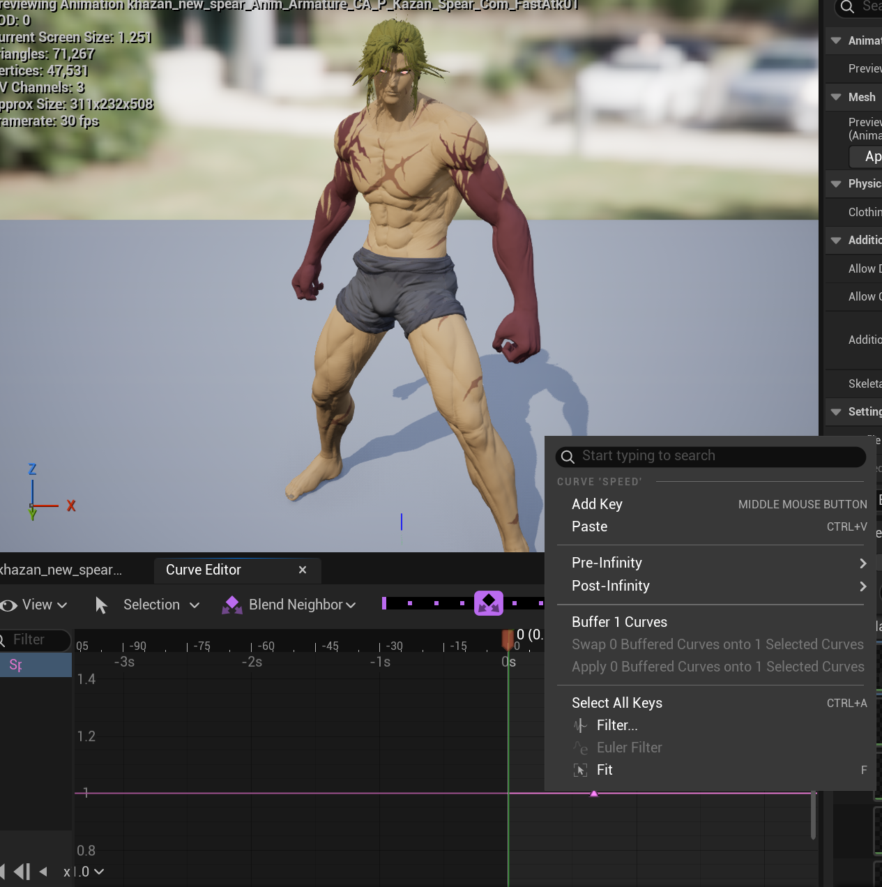 여기까지가 Sequencer 레벨을 이용하여 한 애니메이션 안의 프레임 별 속도 조절을 설명해보았다.