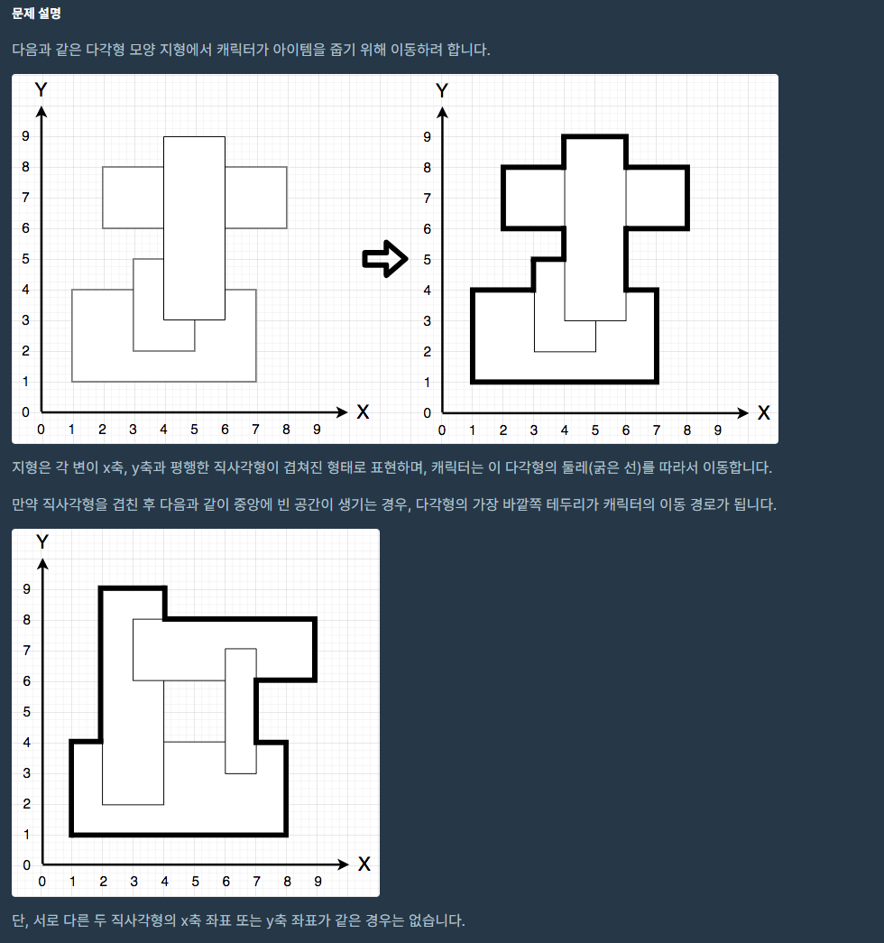 int solution(vector<vector<int>> rectangle, int characterX, int characterY, int itemX, int itemY) {