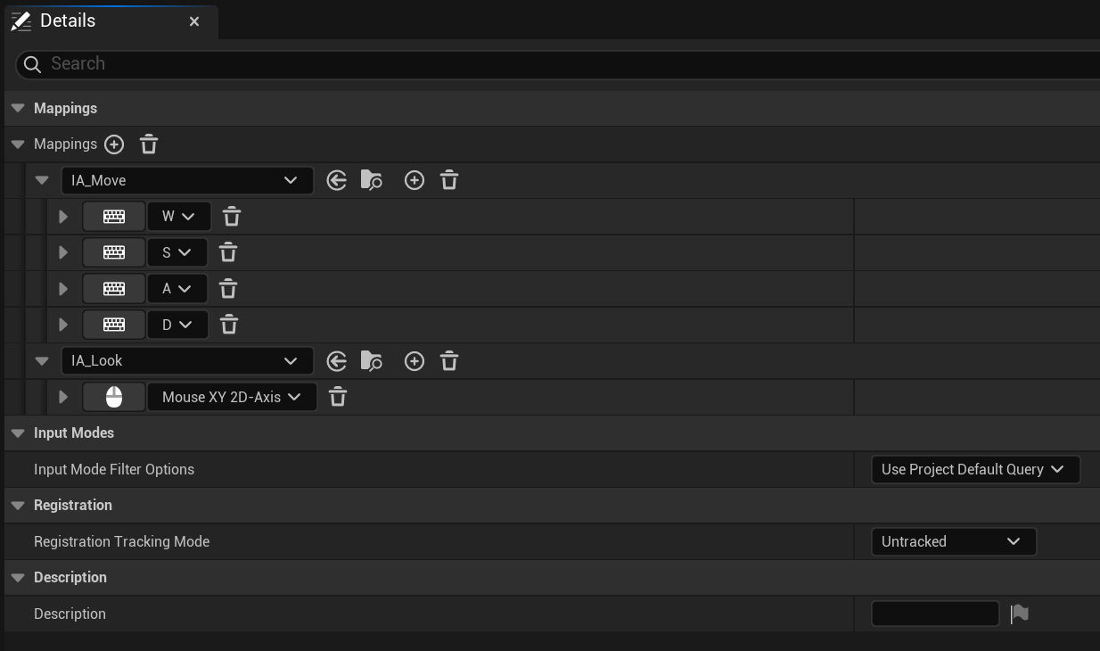 Input Mapping은 각 Input Action이 어떤 키나 버튼 입력에 의해 실행될지를 정의한다.