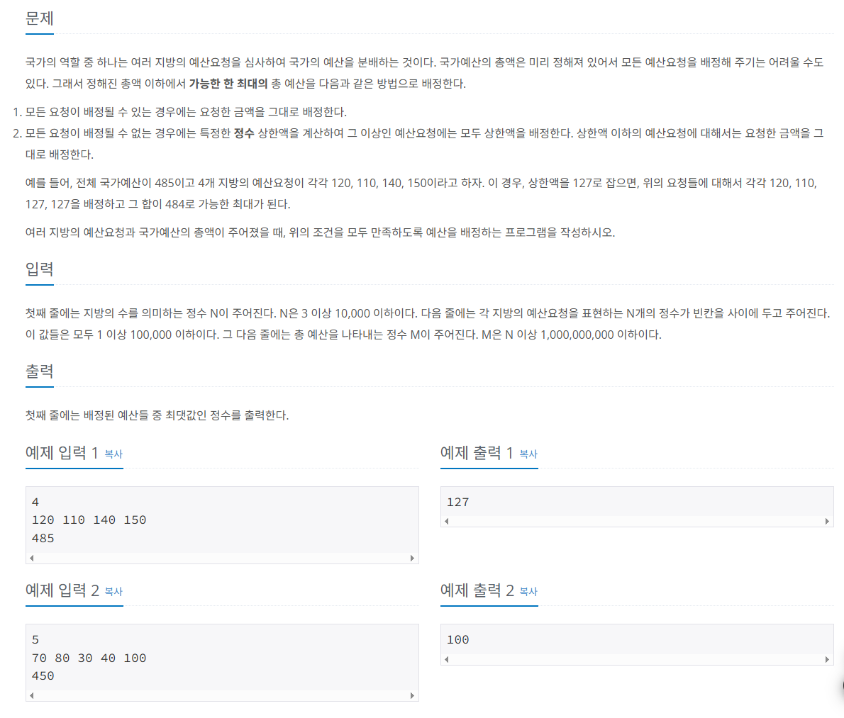 1. 어떠한 값의 범위를 두고 그 조건에 맞는 최대값을 찾는 문제이므로 "이진 탐색 (Binary_Search)" 를 생각함.