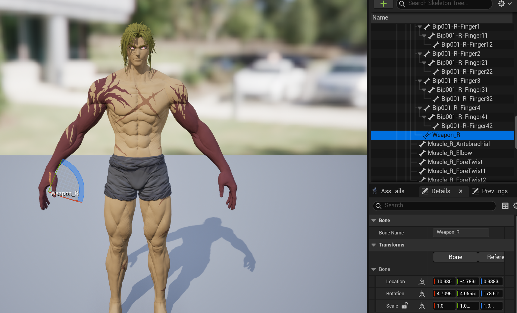 그 중 캐릭터의 무기는 보통 모델러 분들이 Weapon_R로 뼈를 만들어 주십니다.
