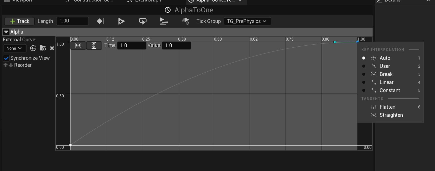 다음과 같이 해당 값의 변화량을 조절할 수 있는 창이 나오며 "Linear, Constant" 등 그래프의 모양을 설정해 줄 수 있습니다.