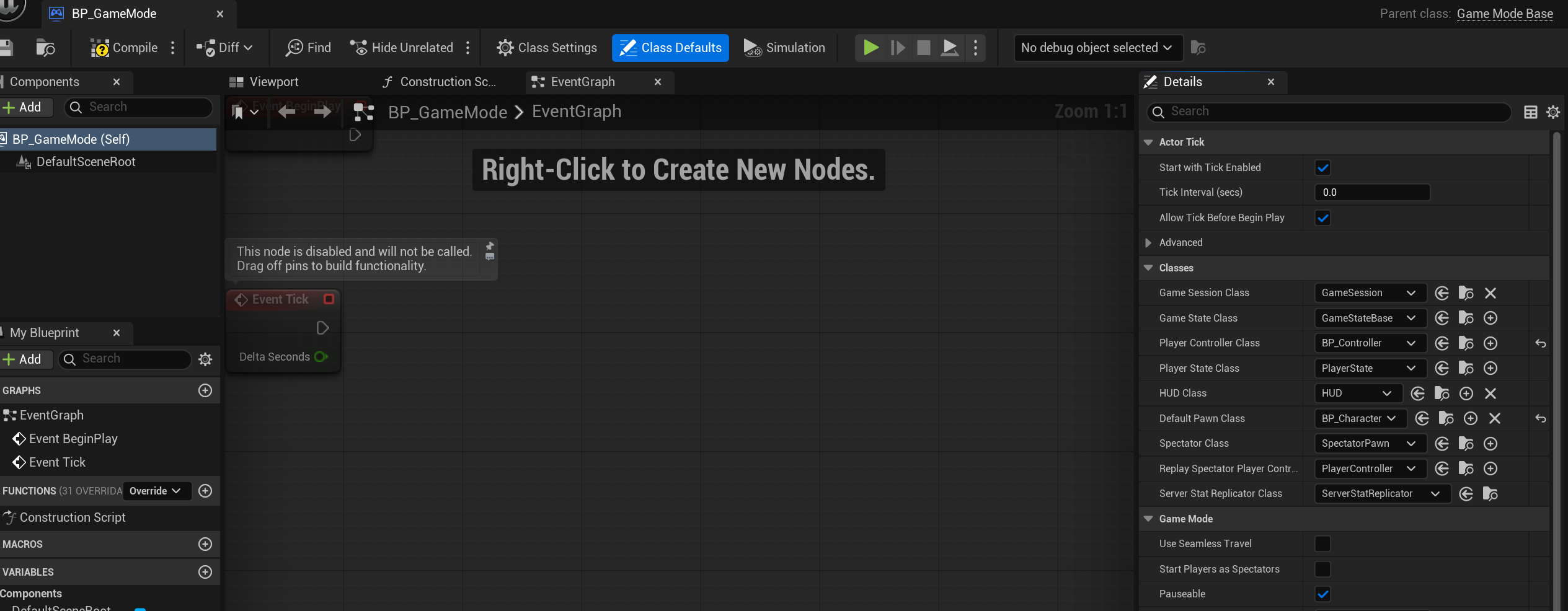 GameMode는 해당 월드에서 사용할 기본 클래스(플레어어, 컨트롤러 등)를 결정하는 역할을 합니다.