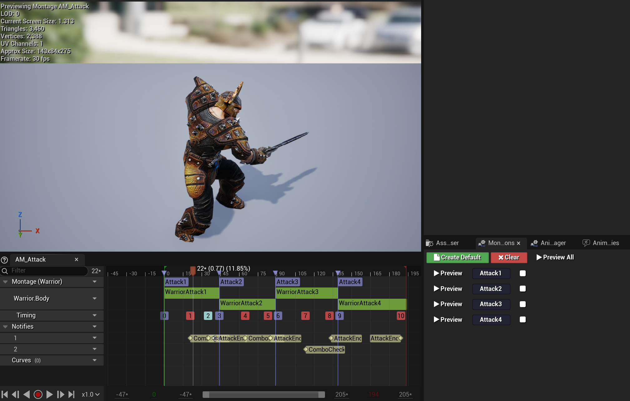 몽타주 애니메이션을 이용한 콤보 공격 구현 방법