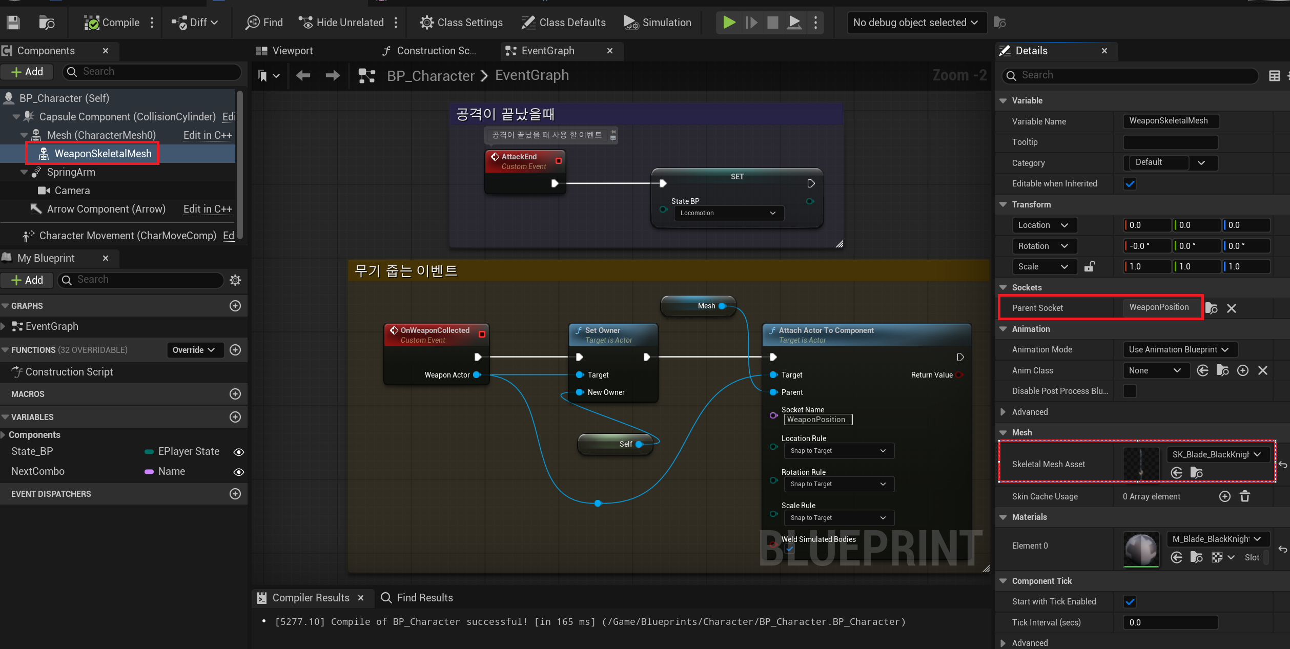 1. Socket에 Weapon을 붙혀넣기
