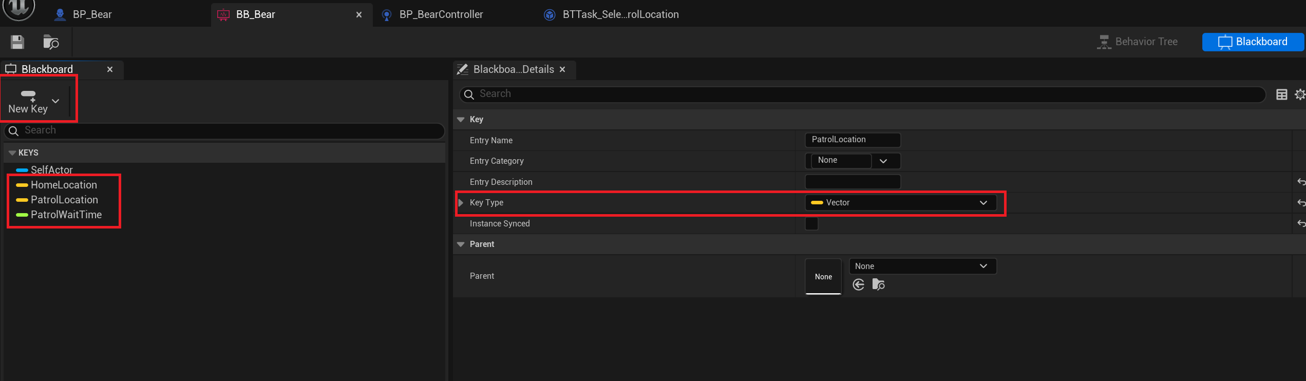 여기까지가 Blackboard와 AIController을 설정한 것이다.
