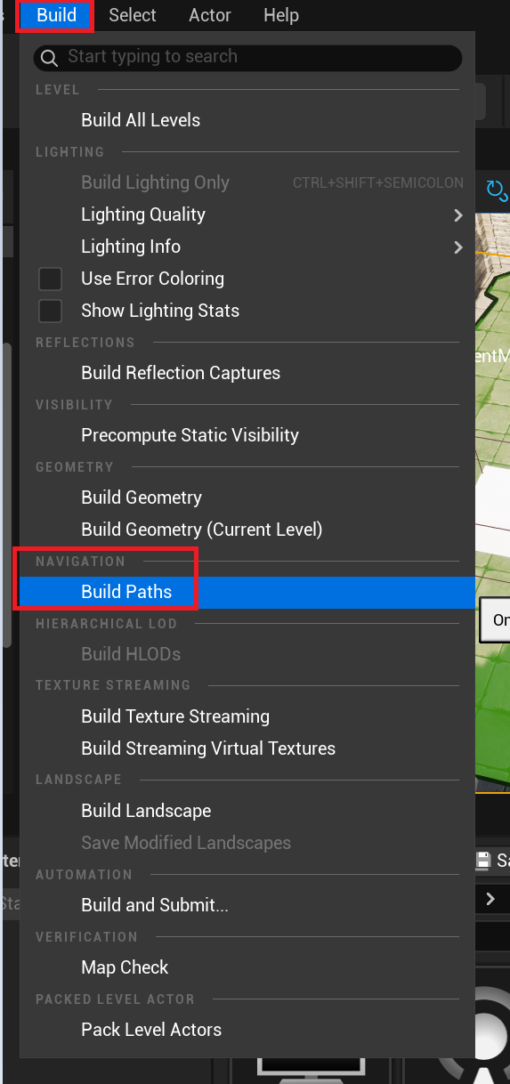 Nav Build Paths를 하는 이유는 네비 매쉬를 배치한 이후 언리얼이 지형을 분석하고 이동 가능한 영역 판별하고 경사 및 장애물 체크를 하고 Nav Mesh를 최종적으로 생성하기 때문이다.