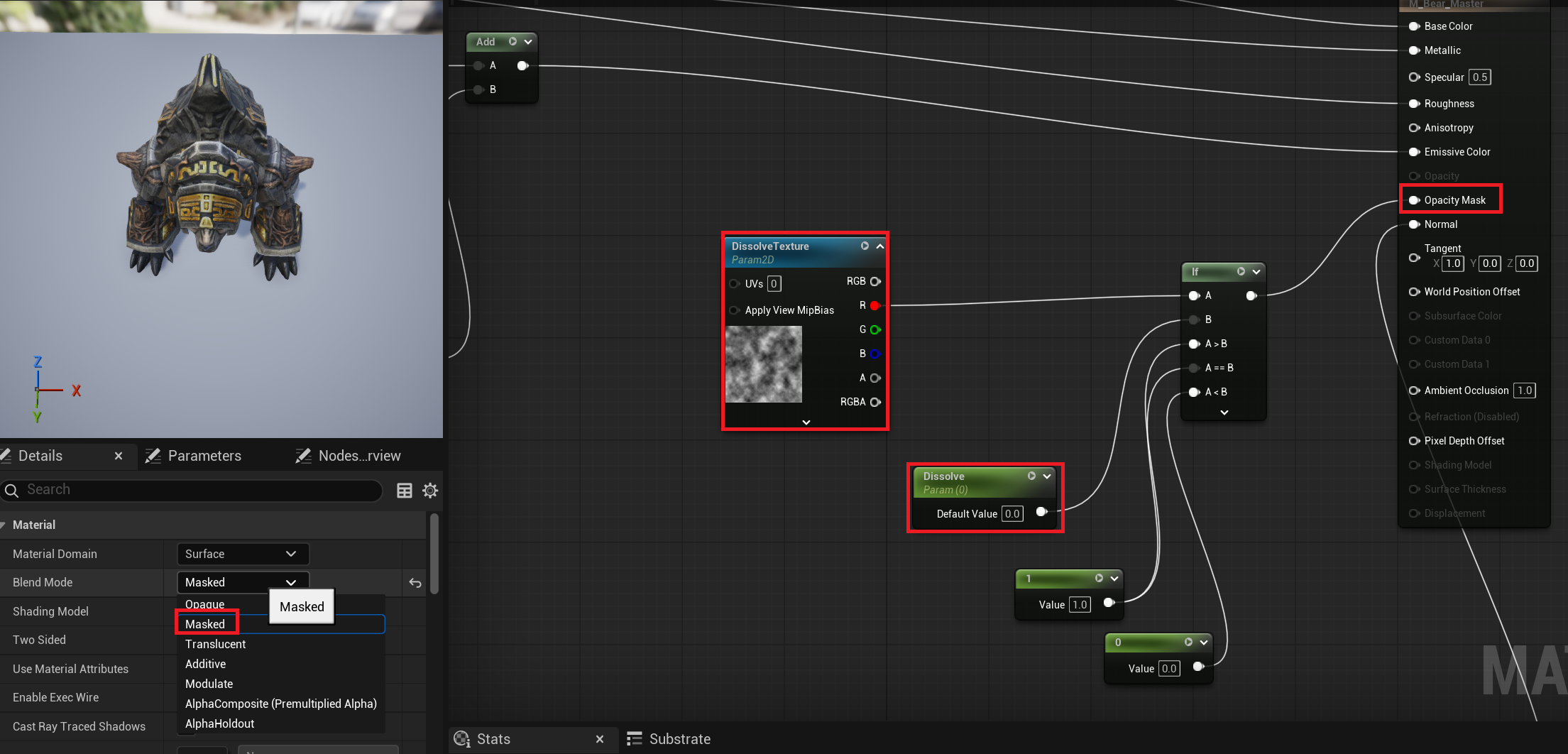 우선 Opacity Mask를 사용하기 위해 왼쪽 Detail에서 Blend Mode를 Masked으로 바꾼다.