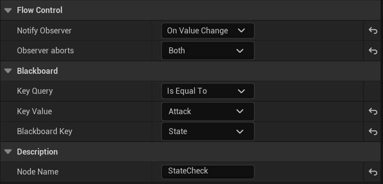 - Notify Observer : Blackboard 값이 변경될 때 Decorator가 다시 평가되도록 하는 옵션이다.